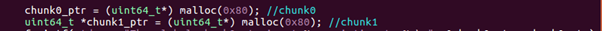 - 0x80 크기의 청크 2개 할당 : 첫 번째 chunk는 전역변수에 저장한다.
