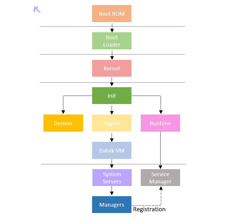 - 이 과정에서 Zygote와 System Process 가 실행된다.