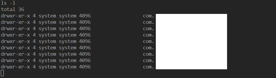 adb shell로 디바이스 쉘에 접속 후, /data/app 경로에서 디바이스에 설치된 앱 폴더가 존재한다. 해당 각 폴더들에는 base.apk 이름의 각 애플리케이션의 apk 파일이 존재한다.