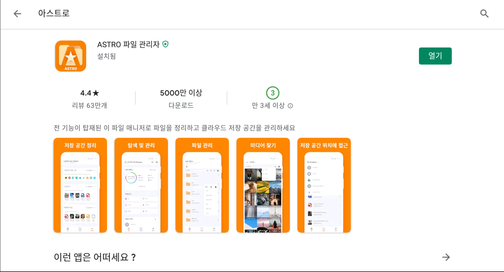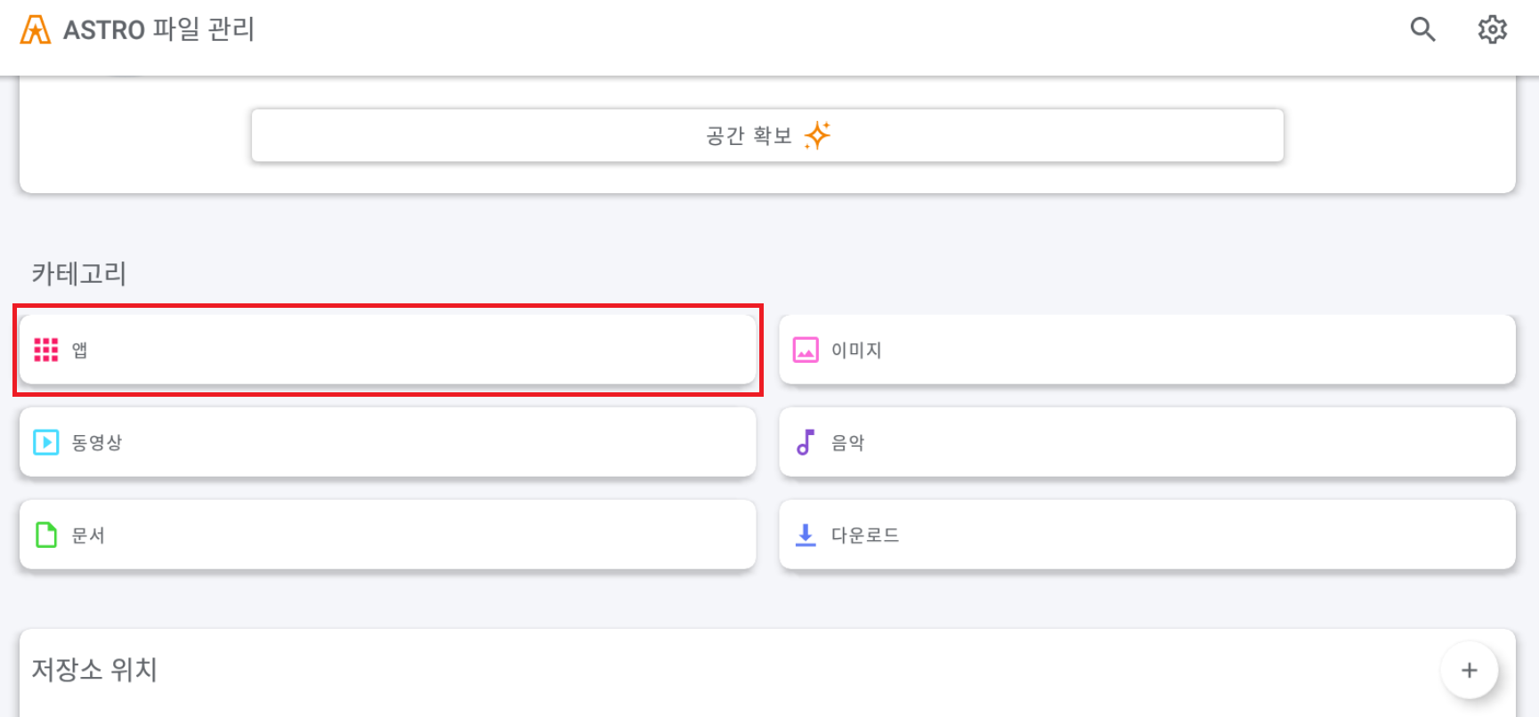 2. <아스트로> 앱 실행하고, 카테고리에서 [앱] 선택해서 앱 매니저에 들어간다.