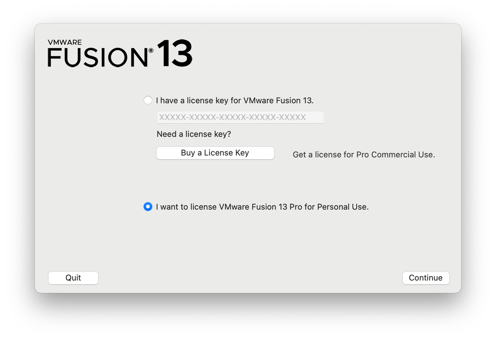 로그인 후 위 페이지로 이동한 후, VMware Fusion 13 Pro for Personal Use 을 선택한다.