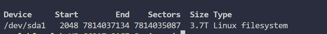 Last sector (2048-7814037134, default = 7814037134) or {+-}size{KMGTP}: 7814037134