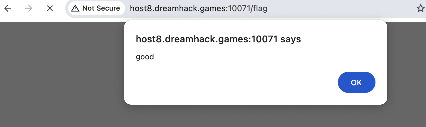/flag 요청 시 xss_filter에서 필터링된 html 태그를 사용하지 않았기 때문에 정상적으로 요청이 수행된다.