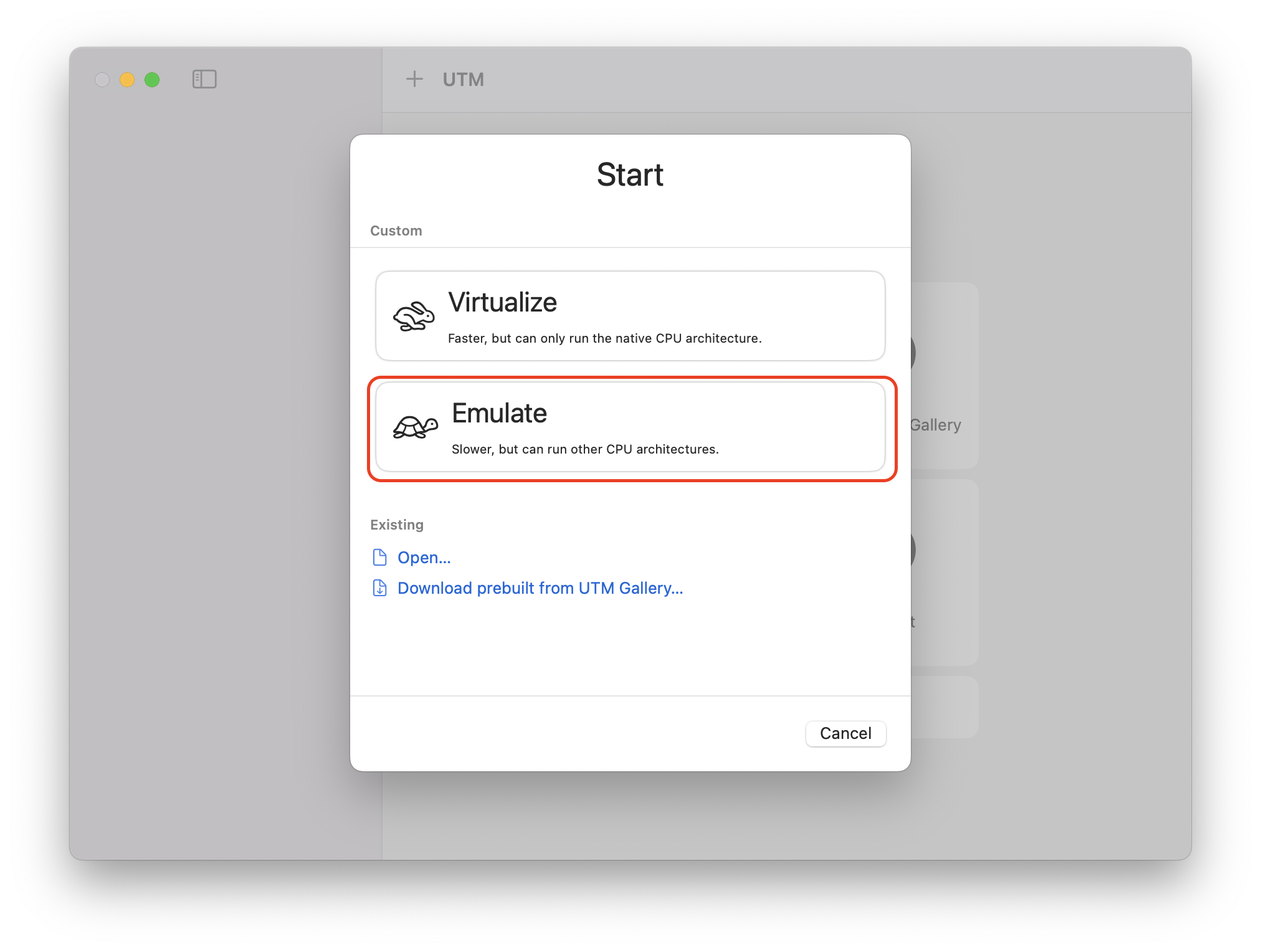 Virtualize의 경우 빠르다고 해서 눌러봤는데, ARM만 지원한다. (써있듯이 동일한 아키텍처만)