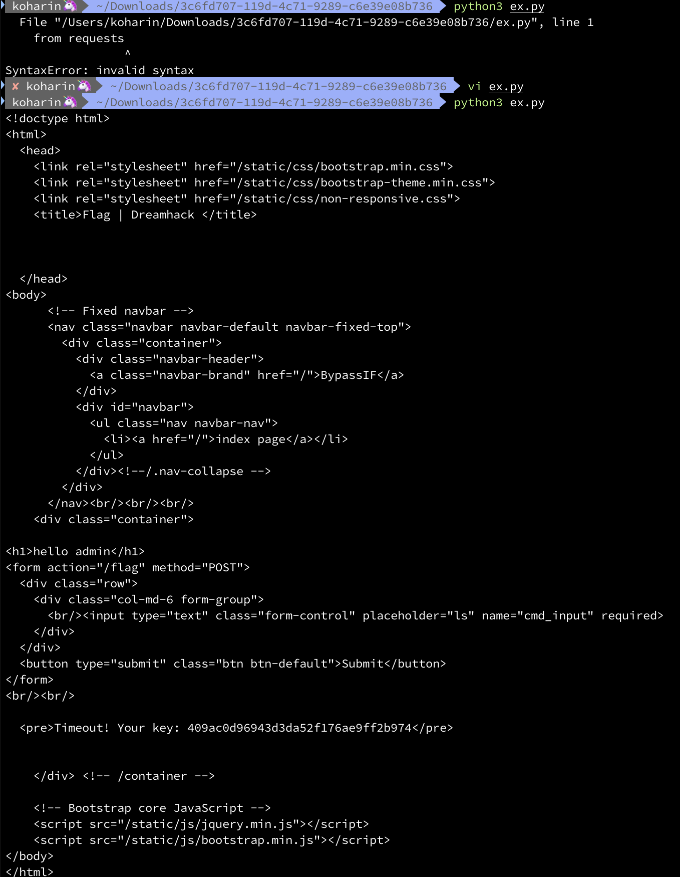 encoded_flag = res.text.split('<pre>Timeout! Your key: ')[1].split('</pre>')[0]