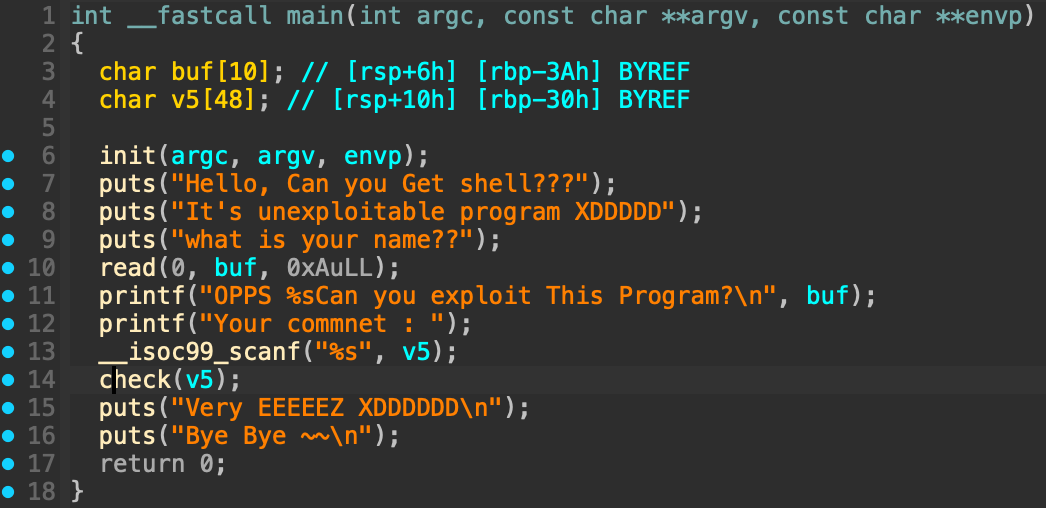 일단 IDA로 보면 스택 구조를 알 수 있다.